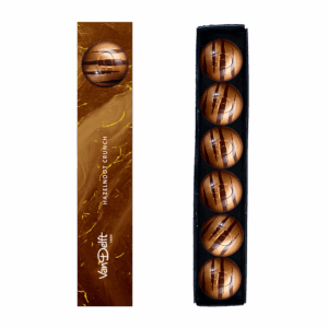 With the utmost care, we select the highest quality ingredients. The crowning glory of these refined chocolates is a crispy thin layer of molded chocolate that gives each bite a nice bite. Packaged in an elegant box with subtle gold details - a work of art in itself.