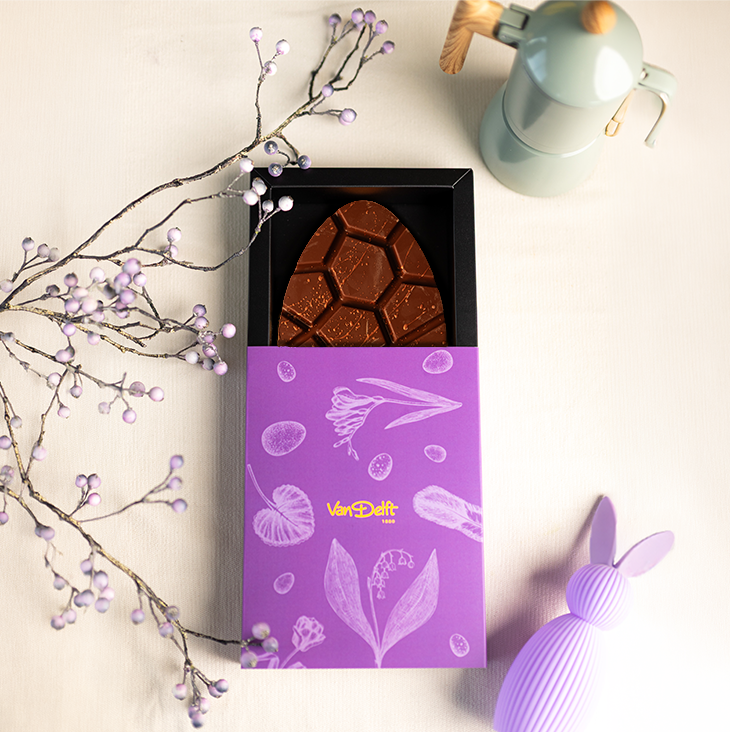 De ultieme melkchocolade reep, in een stijlvolle vorm van een paasei.